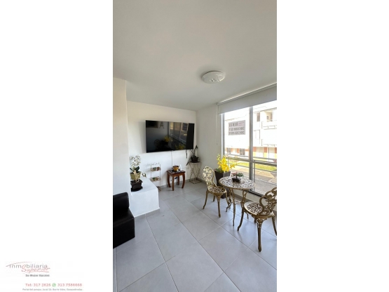 APARTAMENTO TOTALMENTE AMOBLADO DE TRES HABITACIONES CON CLOSET, DOS AMOBLADAS CON CAMA, UNA DESTINADA COMO ESTUDIO CON ESCRITORIO, SILLA Y TELEVISOR SMART; SALA COMEDOR, COCINA INTEGRAL CON NEVERA, LAVADORA, SECADORA Y UN BAÑO CON MUEBLERÍA, ADICIONAL CUENTA CON PARQUEADERO ASIGNADO. EL CONJUNTO CUENTA CON VIGILANCIA Y PORTERÍA 24/7, PISCINA, ZONA BBQ Y SALÓN SOCIAL.