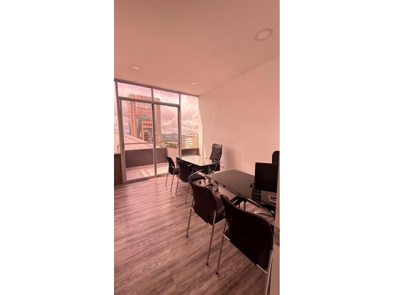 OFICINA CON MOBILIARIO INCLUIDO: DOS ESCRITORIOS, DOS SILLAS GERENCIALES, CUATRO SILLAS INTERLOCUTORAS, UN COMPUTADOR DE MESA, BALCÓN Y HERMOSA VISTA.
