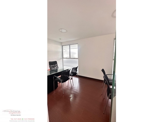 OFICINA CON MOBILIARIO INCLUIDO: DOS ESCRITORIOS, DOS SILLAS GERENCIALES, CUATRO SILLAS INTERLOCUTORAS, UN COMPUTADOR DE MESA Y HERMOSA VISTA.